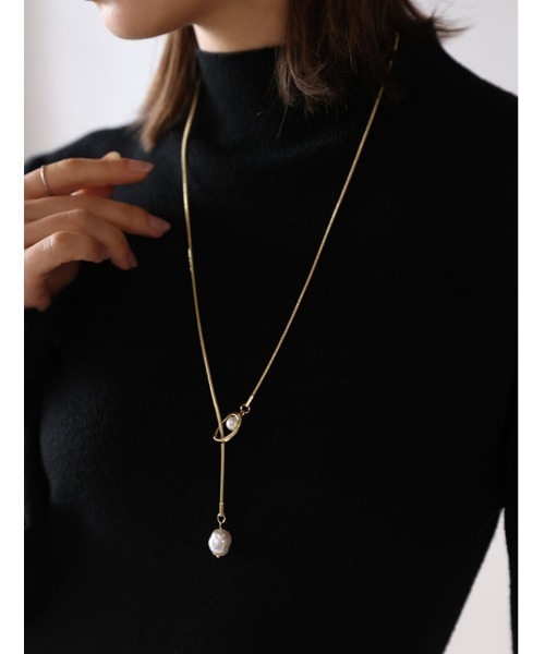 自由なアレンジで胸元を優雅に彩るパールポイントサークルラリエット。都会的でモダンなサークルモチーフに、艶やかなパールをさりげなく配した洗練されたデザインが特徴です。留め具のないラリエット仕様のため、垂らす長さを自由に調整でき、その日のVネックやボートネックといったトップスの形に合わせて最適なバランスで着用いただけます。パールの柔らかな輝きが顔周りに上品なニュアンスを添えつつ、縦のラインを強調することで、上半身をすっきりとスマートに見せる視覚効果も期待できます。デイリーのカジュアルな装いをクラスアップさせるアクセントとしてはもちろん、清潔感が求められるオフィススタイルやお呼ばれシーンまで幅広く活躍。トレンド感とタイムレスな美しさが融合し、大人の女性の日常に知的な華やぎをプラスしてくれる万能なアクセサリーです。