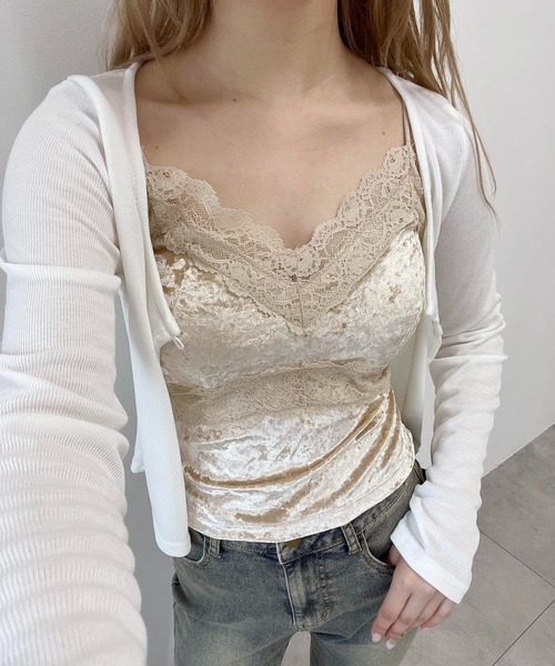 上品なツヤ感で、甘さと大人っぽさを両立した主役キャミソールレイヤードが楽しくなる、今っぽい韓国ムードになめらかなベロア生地が、上品で女性らしい印象に!繊細なレース使いで、さりげない甘さをプラス。インナーとしてはもちろん、シアートップスや薄手ニットの上からビスチェとしても◎------------------------肩紐アジャスターありカップ取り外し:不可------------------------▼便利なお気に入り登録▼商品のお気に入り登録で、再入荷の通知・ラスト1点・お得なセールの通知を受け取ることができます。ブランドのお気に入り登録で、新商品や再入荷など、さらにお得な通知を受け取れます。《Attention》・撮影はサンプル品を使用しており、実際の商品とは仕様や加工・サイズ等が若干異なる場合がございます。・撮影場所や照明の照射・角度、お使いのモニター環境により色味や仕様、加工、カラーが若干異なる場合がございます。・商品によっては1〜3cm程度の採寸誤差がある場合がございます。・移染等防止のため水や汗で濡れたまま放置することは避けて頂き、濃色アイテムは単体でのお洗濯をお願い致します。・素材臭がある場合は陰干しをお願いいたします。・アテンションタグを必ずご確認の上ご使用下さい。