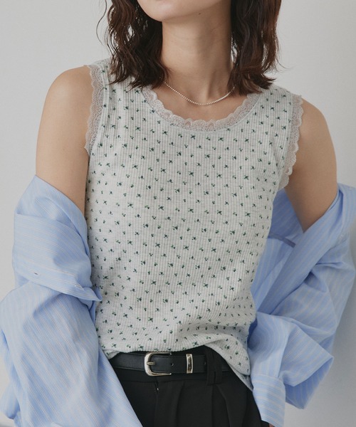 選べる柄&カラー アソートレースタンクトップ≪さり気ない甘さをプラスするデイリーインナー≫シンプルなデザインにフェミニンなディテールを効かせ、インナーとしても1枚着としても使いやすい万能アイテムです。■point・ネック&アームホールに繊細なレースデザイン・選べるドット柄/小花柄/無地の3パターン・ベーシックなシルエットで着回しやすい・デイリー使いしやすい軽い着心地・リブの縦ライン効果でスッキリ見せ・ブラ紐がしっかり隠れて1枚でも着用しやすい・M/Lの2サイズ展開■detail首元と腕周りにあしらったレースが、シンプルなスタイリングにもさりげない華やかさをプラス。小ぶりなドット柄と小花柄は主張しすぎず、大人カジュアルにも取り入れやすいデザイン。4種類のバリエーション展開で気分やコーデに合わせて選べるのも嬉しいポイントです。ストレスフリーな着用感でデイリーだけでなく、ジムやヨガウェア、リラックスタイムのルームウェアとしての着用もおススメです。■fabricふんわりとした肌触りのリブ生地………………………………伸縮性:あり透け感(濃色):なし透け感(淡色):多少あり裏地:なしポケット:なし………………………………■混率【本体】ポリエステル 77% 綿 19% ポリウレタン 4%【レース部分】ナイロン 88% ポリウレタン 12%原産国:中国■coordinateシャツやカーディガン、ジャケットのインナーとしてはもちろん、デニムやスラックスと合わせてヘルシーに1枚着でも◎カットソーや薄手ニットの上に重ねてこなれ感あるレイヤードスタイルに仕上げるのもおススメです。レースがアクセントになり、シンプルコーデも華やかに仕上がります。■SNS情報@adthie.official【公式】Instagramでも新着アイテム&トレンドアイテムを毎日発信中!!洗濯表記【洗濯処理】水温30℃を限度に、洗濯機で弱い洗濯ができます【漂白処理】漂白できません【タンブル乾燥】タンブル乾燥禁止です【自然乾燥】日陰で、吊り干しします【アイロン仕上げ】120℃を限度に、アイロンが使えます【ドライクリーニング】ドライクリーニングできません【ウエットクリーニング】非常に弱い操作による、ウエットクリーニングができます【洗濯表記説明文】洗濯ネット使用アイロンは裏側から中温・低温であてるAttention【お取り扱い上のご注意】この製品は風合いを重視しているため、毛玉が発生する場合があります。これは、素材の特性上避けられない現象で、その発生を完全に防止することはできません。1日着用したら2日休ませるなどローテーションをして着用して下さい。無理に引っぱって取ろうとせず、ハサミや毛玉取り器などで取り除いて下さい。この製品は特殊プリント加工をしています。加工の特性上、永久的なものではなく、徐々にひび割れや脱落・べとつきを起こします。以下の点にご注意の上、お取り扱い下さい。・かばんなどによるプリント部分への過度な摩擦はお避け下さい。・プリント部分は汚れが取れにくく、また後に変色を起こすことがあるので、汚れ・汗・飲料などが付着した場合は、すみやかに除去して下さい。・他製品や同製品中のプリント部分や、印刷物、フィルムなどとの長時間の密着は、色移りや樹脂の固着の原因となるため、お避け下さい。・高温多湿の場所は避け、十分乾燥させてから保管して下さい。