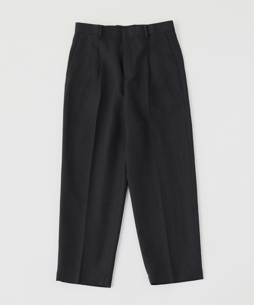 メーカー品番 PRAGLM0202裾に向かいテーパードがかかったパンツ。すっきりとしたシルエットが特徴です。また、ベルト内側はマーベルト仕様で、センタークリースを採用しています。ジャケットとセットアップでも、単品でも着回しのきくアイテムです。愛知県一宮市にて、やや甘めに織り上げたサマ―ウール素材です。ウールとリネンの強燃糸を使用しているので、ドライタッチで肌離れがよく、通気性もあり、またシワになりづらい等、様々な機能性も併せ持ちます。仕上げの段階で、少し生地を膨らますことで、独特の風合いが生まれます。【ATON / エイトン】2016年にスタートした日本のユニセックスファッションブランド。ブランド名の「ATON」は、「AからNまで」という意味で、原材料から製品の仕上げに至るまで、生産者との密なコミュニケーションを重視し、透明性のあるものづくりを追求する姿勢を表しています。「自分のスタイルを確立した大人だからこそ着こなせるリアル・スタンダード」をコンセプトに掲げ、フォルムとコンフォートのバランスを追求しています。その結果、着心地が良いのにツヤっぽく、カチッとしているのに軽いという独自の魅力を持つアイテムを展開しています。【ご注意】※照明の関係により、実際よりも色味が違って見える場合があります。またパソコン・スマートフォンなどの環境により、若干製品と画像のカラーが異なる場合もございます。※商品の色味は、商品アップ画像をご参照ください。本体:ドライクリーニング