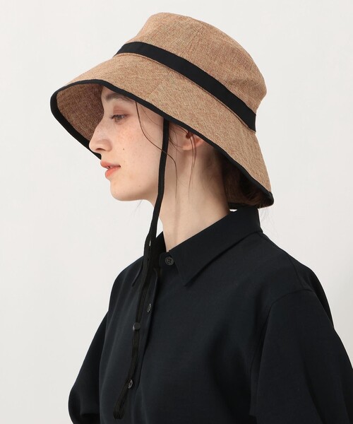 麻素材のようなナチュラル感のあるギマシリーズのハットです。 シンプルで使いやすい色味とデザインでまとめ、普段使いしやすい帽子を作りました。ツバが広く、目元にかかる日差しを遮ってくれるのも魅力です。UVカット機能付きで紫外線対策として持っておいても重宝します。頭まわりは内側の面ファスナーテープでサイズ感の調節が可能。ドローコード仕様のあご紐を備えており、自転車に乗るときに風で飛んでしまう心配がありません。 *紫外線遮蔽率/94%以上 *濃色製品は色落ちしますので他のものと分けて洗濯してください。洗濯前のつけ置きや濡れたままで長時間放置しないでください。