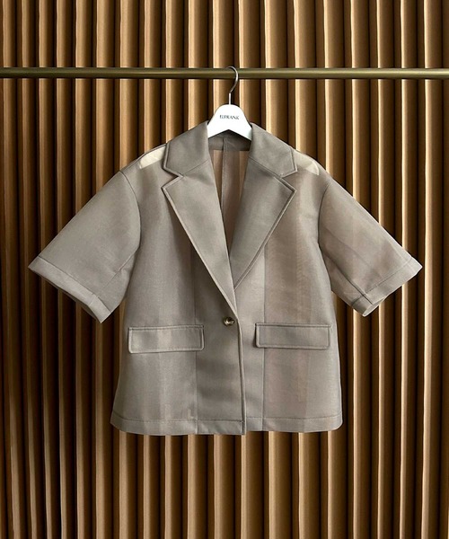 ハリ感のあるシアーなメッシュ素材がトレンド感あふれるジャケットです。 軽やかな透け感で重くなりがちなジャケットスタイルに、女性らしい抜け感を演出してくれます。 サラっと羽織るだけでコーディネートをアップデート。 レイヤード次第で表情が変わるので、デイリーからトレンドコーデまで幅広く活躍します。 素材 ハリのあるシアーのダンボール生地を使用しています。 軽くて透け感がある素材感の為、涼しく最適な素材感です。 また、しわになりにくく、扱いやすいのもポイント。 ※組織の特性上引っかかりやすい生地感になります。着用の際はアクセサリーやバック、ベルトなどとのひっかけにご注意ください。 詳細情報 厚み:■薄手 □普通 □厚手 透け感:□なし ■あり 光沢感:■なし □あり 伸縮性:■なし □あり 裏地:■なし □あり カラー展開 ブラック(黒)、ホワイト(白)、グレイッシュベージュ インフォメーション 【商品のお気に入り登録】 再入荷通知やラスト1点の通知、セール情報を受け取ることができます。 【ショップのお気に入り登録】 新商品や再入荷、お得な情報などを受け取ることができます。 ELFRANK ELFRANK(エルフランク)は、「Elegant(上品・優雅)」×「Frank(気さくな・身近な)」をキーワードに、 ライフスタイルに寄り添った新しいカジュアルスタイルを発信するブランドです。 日常のディテールにこだわり、自分らしさを楽しみ磨き上げていく... そんな女性に向けて、等身大の美しさと憧れを表現したファッションアイテムを提案します。 ※商品画像は撮影時の光や角度、お使いのモニター環境により実物の色味と異なって見える場合がございます。 ※記載のサイズは実寸サイズとなります。採寸箇所により、差が生じる場合がございます。 ※通販の特性上、発送上の状態によって商品にシワがついている場合がございます。 ※着用、お取り扱いの際は、商品に付いている品質表示とアテンションタグを必ずご確認ください。