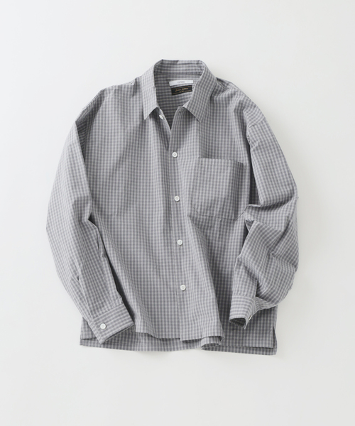 James Fabric ex ST/CHK SH春の主役はこれで決まり。大人が着たい「計算された抜け感」シャツ。毎シーズン好評を博す「JAMES FABRIC」とのコラボレーションシリーズが、この春待望のアップデート。relumeだけでしか手に入らない完全別注ファブリックを使用し、今の気分を捉えた「黄金比シルエット」に仕立て直しました。■こだわりの「40番手ブロード」ウォッシュ仕上げ生地には150gのウェイトを持つ40番手ブロードをベースに採用。薄すぎず厚すぎない、「中薄肉」のちょうど良い肉感が特徴です。さらに生地WASH仕上げを施すことで、ドレスシャツのようなハリがありながらも、微細なシワ感が生まれ、こなれた風合いを演出します。■トレンドど真ん中の「短丈スクエア型」昨年のモデルをベースに、着丈を約3cm短く設定し直し、より「短丈スクエアのボックスシルエット」にブラッシュアップ。身幅には余裕を持たせつつ、裾のあしらいをスクエア気味にすることで、ワイドパンツやスラックスとのバランスが格段に向上しました。■首元で差がつく「台襟なし」仕様シャツの土台となる「台襟」をあえて無くすことで、カッチリしすぎない程よいリラックス感をプラス。カーディガンのように気負わずバサッと羽織れる、絶妙な「決めすぎないカッコよさ」が魅力です。■選べる4つの個性・グレー(ミニチェック): 遠目には無地に見えるほど繊細。知的なトーン。・ベージュ(ストライプ):肌馴染みの良いニュアンスカラー。ナチュラルな装いに。・グリーン(ミニチェック): 春の爽やかさを凝縮。白Tとの相性が抜群。・サックスブルー(ストライプ): 清潔感のある王道カラー。ジャケットのインナーにも。**********************裏地:なし伸縮性:なし光沢感:なし生地の厚さ:普通**********************【スタッフ着用コメント】《スタッフH》身長:174cm/体重:60kg/体型:中肉中背/普段サイズ:M/着用サイズ:Mサイズ感: 身幅はかなりたっぷりとゆとりがありますが、ルーズになりすぎずスッキリとしたボックスシルエットで着られます。素材感: 綿100%らしいドライな肌触り。薄手ながらもしっかりとハリ・コシがあり、シルエットがきれいに保たれる生地感です。着心地: 全体的にゆったりとしているので肌離れが良く、ストレスフリーな着心地です。第一ボタンを開けると首元が涼しく、軽い羽織りとしても重宝しそうです。**********************《画像についてのご注意》※照明の関係により、実際よりも色味が違って見える場合があります。またパソコン・スマートフォンなどの環境により、若干製品と画像のカラーが異なる場合もございます。※商品の色味は、商品アップ画像をご参照ください。《商品のお気に入り登録について》「カートに入れる」または「予約する」右側のハートマークを押していただくと、再入荷、残り1点、セールなどの通知を受け取ることが出来ます。本体:洗濯機洗い(弱)