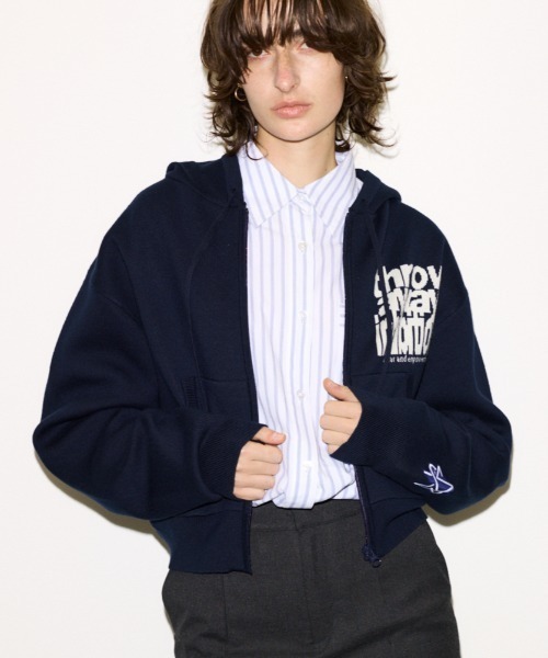 ■POINT ESQWE×THROW by SLYコラボレーション企画。 タイポグラフィやロゴデザイン、幅広いジャンルのアートワークを手がけるグラフィックデザイナーHOSHI氏に新しく描きおこしてもらったアートワークを使用した、リミテッド感満載のニットジップパーカー。 ■DETAIL 左胸とバックに大胆にスローガンを配置し、ESQWEのアイコンでもある星マークを左袖口にさりげなくワッペン刺繍で配置した遊び心満載のアイテム。 AL512フロントにはカンガルーポケットデザインを取り入れ、程よくルーズなサイズ感になっているので羽織るだけで今っぽい抜け感の出せるアイテムとなっています。 ■STYLING きれいめなマニッシュボトムからデニスタイルまで幅広くデイリーに合わせやすく、今の時期はアウターの中に着込んだり、インナーにTシャツを着たりとシーズン問わず、さまざまなレイヤードスタイルが楽しめます。 ■FABRIC/MATERIAL コットンアクリル混の程よくハリのあるダブルジャガード素材を使用。 ※お取り扱い上のご注意 ・洗濯機表示の場合はネットに入れて弱水流で洗って下さい。 ・手洗いの場合はもみ洗いを避けて軽く押し洗いして下さい。 ・洗濯後は、速やかに形を整え干して下さい。 ・丈の長い製品、袖など伸びやすい箇所はハンガーで支えたり、平干しをすることで型崩れを防止できます。 ・本品は素材の特性上色落ちします。 ・洗濯、クリーニング、着用(使用)時に他の衣類や雑貨、家具類に色移りする事があります。 ・特に汗や雨等で湿った状態では、色落ちが顕著になります。 ・白、淡色との組み合わせは避け、お取り扱いには十分ご注意下さい。 [注意事項] ※画像の商品はサンプルです。実際の商品と仕様、加工が若干異なる場合があります。 ※画像の商品は光の照射や角度、お使いのモニター環境により、実物と色味が異なる場合がございます。 ※着用、お取り扱いの際は、アテンションタグをご確認ください。 ※一部予約商品につきましては生産上の都合によりお届け予定日や店頭発売と前後する場合もございます。 ※追加生産商品は、一部の店舗、通販で販売中の場合がございます。予めご了承下さい。 ※こちらの商品はSLY独自の採寸方法となっています。本サイトのサイズガイドと採寸方法が異なる場合がありますのでご了承ください。 【SLY/スライ】 「Casual」「Girly」「Mode」をベースに発信する、ディテールへのこだわりが詰まった、どこか必ず女性らしさを感じるアーバンスタイル。 さまざまなエッセンスをミックスした、時代の空気を体現するコレクションを展開。 ▼商品のお気に入り登録 お気に入りアイテムの値下げ・再入荷・在庫1点などの通知を受け取ることができます。 ▼ブランドのお気に入り 登録新商品や再入荷、セール、クーポン配布などお得な情報を受け取ることができます。