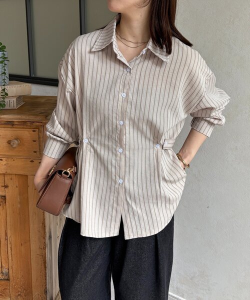 【2026SS】程よい抜け感とスタイルアップも叶えるシャツ【POINT】・繊細なストライプがさりげなく上品さを・ウエストベルトでスタイルアップを叶える・オンオフ問わず活躍し、オフィスにもカジュアルにも◎ ・爽やかストライプが清潔感をプラス【STYLING】・ きれいめスカートと合わせて、オフィスにもぴったりの 上品スタイルがおすすめです。足元はパンプスで女性らしさも◎・デニムと合わせてカジュアルダウン。 襟を少し抜いて着れば、 こなれ感のある大人スタイルに。【アフターケア】・手洗い可・漂白不可・タンブル乾燥処理不可・日陰でのつり干し乾燥がよい・アイロン可(低温)・ドライクリーニング不可・ウェットクリーニング可----------------------------------------------透け感:なし裏地:なし伸縮性:なし光沢感:なし----------------------------------------------※商品画像は着用イメージです。 光や角度により、実物と色味が異なる場合がございます。 また表示のサイズ感も実物とは若干異なる場合もございますので、 ご了承ください。※着用、お取り扱いの際は、商品についている品質表示と アテンションタグを必ずご確認ください。----------------------------------------------【Thevon】 自分を魅せる「ニュアンスファッション」オトメからオトナに向かう女性へ旬なアイテムを提案----------------------------------------------気になるアイテムは【お気に入り登録】がおすすめ!▽商品のお気に入り登録完売カラーの再入荷やラスト1点の通知などを受け取ることができます。▽PALCLOSETでブランドをお気に入り登録新商品やクーポン、セール情報をいち早く受け取ることができます。