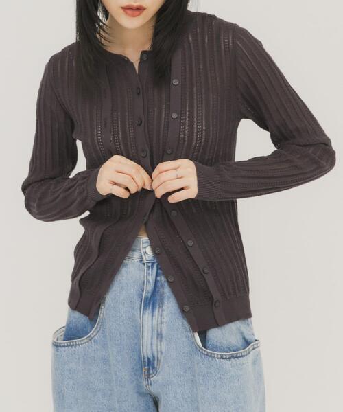 【透かし編みデザインがポイントのダブルフロントニット】 コットンレース調のような透かし編みがポイントになったニット。前開き仕様ですが、前立てが2つ付いているデザインになっており、フロント釦を留めた状態でサイドの前立てを留めるとウエストがシェイプされます。着こなしにより表情が変わり、ワイドボトムとも相性抜群な1着です。 【2026 Spring/Summer】【26SS】 総重量 : 約200g ※商品画像は、光の当たり具合やパソコンなどの閲覧環境により、実際の色味と異なって見える場合がございます。予めご了承ください。 ※商品の色味の目安は、商品単体の画像をご参照ください。 ▼お気に入り登録のおすすめ▼ お気に入り登録された商品は、マイページにて現在の価格情報や在庫状況の確認が可能です。 お買い物リストの管理にぜひご利用ください。 素材感 透け感 : あり 伸縮性 : あり 裏地 : なし 光沢 : なし ポケット : なし One