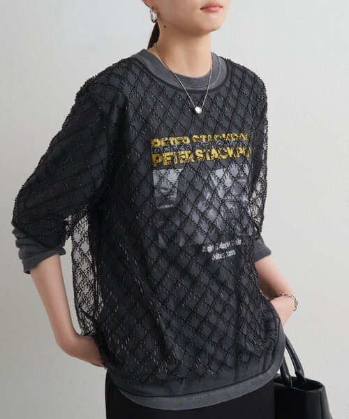 繊細な輝きを纏う、大人のためのレイヤードトップス ■デザイン 繊細なチュール生地にビーズ刺繍を施した華やかなブラウス。 透け感のある素材が、抜け感のある印象に◎ トレンドのキラキラ要素もあり、動くとビーズが煌めいて表情を変わります。 首元・袖口・裾はパイピング仕様で、繊細な素材ながらすっきりとした仕上がりとなっております。 ■コーディネート あえて素肌の上から着るのではなく、ロゴTやワンピースなどの上から重ねて着用するのがおすすめです。 お手持ちのアイテムにプラスするだけで、普段のコーディネートがぐっと洗練された印象に。 結婚式やパーティーなどの華やかなシーンにも、普段使いにも、幅広く活躍してくれます。 【ご購入前に必ずご確認ください】 デザインの特性上、着用時に肌への刺激を感じる場合がございます。 必ずインナーを着用し、直接肌に触れないようにしてください。 ■素材・洗濯表記 ポリエステル100% 洗濯表示:洗濯不可 ●直接アイロンは避け、裏からスチームアイロンを浮かして掛けてください。 ●アイロンの際は、当て布をして軽く当ててください。 ●クリーニングの際は、洗濯ネットを使用してください。 ●ご使用の際は、引っ掛けに十分ご注意ください。 【お気に入り登録でお得な情報をお知らせいたします 】 完売カラーの再入荷やラスト1点の通知、セールの通知を受けとることができます。 【ブランドのお気に入り登録】 新商品や再入荷、いち早くセールやクーポンなどのブランドの情報を受けとることができます。 生産の都合上、お届け時期が前後する場合がございます。 システムの都合上、店舗より入荷が遅れる場合がございます。 実際にお届けする商品と仕様やサイズが異なる場合がございます。 照明や光の当たり具合で色味が違って見える場合があります。