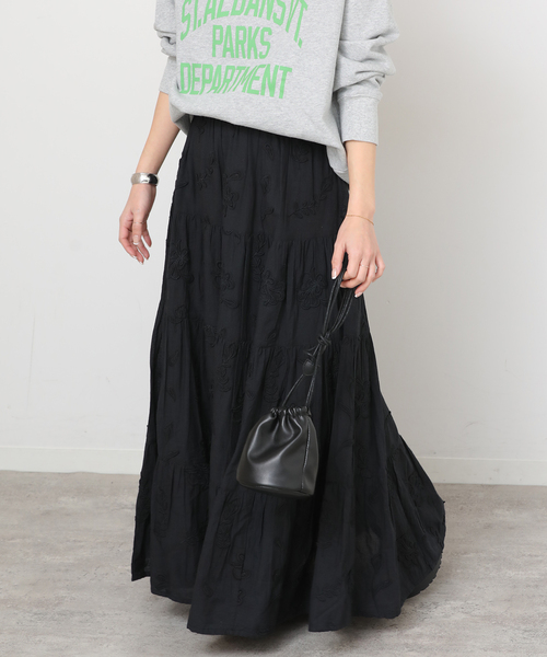 【2026SS】 JOURNAL STANDARD relume ◆3Dの立体刺繍フラワーがスタイリングを華やかに見せてくれるスカート 甘めな印象になりやすい ティアードスカートを 素材感とディティールで 大人っぽく仕上げた1着。 ウエストは総ゴムで ラクな穿き心地のイージー仕様。 夏まで着用できるよう 裏地は薄手でおつくりしました。 シンプルなトップスに合わせるだけで こなれ感のあるスタイリングになります。 同シリーズで下記もございます。 3Dシフリイージーパンツ(品番:26030462706010) ※カラーによって取り扱い方法が異なります。 ※取り扱いについては、商品についている品質表示でご確認ください。 ********************** 透け感:ホワイトのみややあり 裏地:あり 伸縮性:なし 光沢感:なし 生地の厚さ:普通 ********************** 【スタッフ着用コメント】 《スタッフT》 身長:161cm/体型:細身/普段サイズ:M/着用サイズ:FREE サイズ感:全体的にゆとりがあります。 素材感:柔らかいコットン素材。立体感のあるフラワー刺繍がポイントです。 着心地:ボディと同色のフラワー刺繍がちりばめられていて、華やかながらも大人が着やすいフェミニンスカートです。 ********************** ※照明の関係により、実際よりも色味が違って見える場合があります。 またパソコン・スマートフォンなどの環境により、若干製品と画像のカラーが異なる場合もございます。 ※商品の色味は、商品アップ画像をご参照ください。 本体:手洗い可能