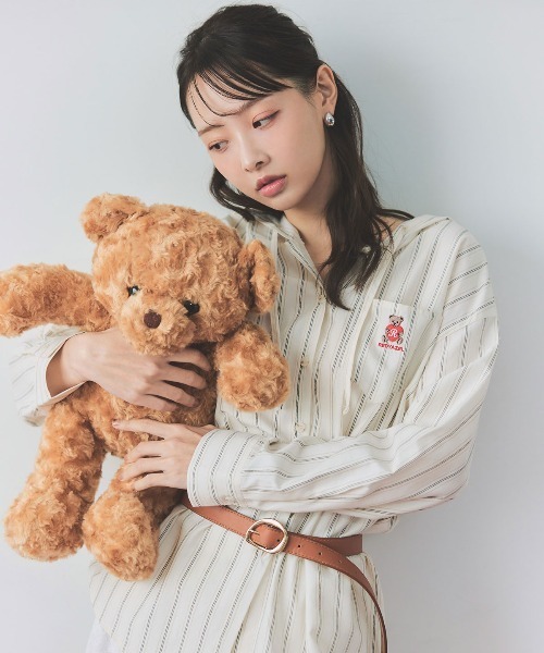 きちんと×カジュアル、ちょうどいい抜け感 REDYAZELのオリジナルアイコン「Azely(アゼリー)」モチーフの刺繍を胸元にあしらった、フード付きシャツブラウス。ストライプ柄のシャツデザインに、フードディテールをプラスすることで、程よくカジュアルな抜け感を演出します。胸ポケットにはAzelyの刺繍を施し、REDYAZELらしい遊び心をさりげなくプラス。シャツのきちんと感と、フードのリラックス感をバランス良く掛け合わせた一枚です。ややゆとりのあるシルエットで、インでもアウトでも着こなしやすく、スカートと合わせたフェミニンスタイルから、デニム合わせのカジュアルスタイルまで幅広く活躍します。 透け感:なし 裏地:なし 伸縮性:なし 生地の厚さ:やや薄手 F:着丈67cm 身幅57cm 肩幅52cm 袖丈52cm