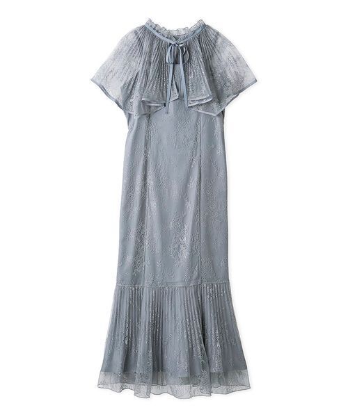 【ふんわり華やかなレースケープセットのマーメードシルエットレースドレス】【Design/Styling】繊細なフローラルレース生地でお作りした、キャミソール型マーメードシルエットワンピースと、レースケープのフェミニンなオケージョンドレスセットが届きました。ワンピースは縦ラインの切り替えで、身体のシルエットを美シルエットに見せる設計に。裾は生地にプリーツ加工を入れてふんわりと仕上げました。動くとふわふわと揺れる裾がレディな印象です。表地はレース+マットサテン生地の抱き合わせにすることで透けを防止。縫い付けの裏地付きなので着用も安心です。フィット感のあるデザインですが、ウエスト部分はゴムを入れて着心地良く仕上げました。ウエストサイズは後ろの細グログランリボンで体型に合わせて調節が可能。肩紐ストラップはアジャスター付き。背中側のファスナーで着脱可能です。セットのレースケープは、ハンカチヘムのデザインにプリーツ加工を加えて華やかに仕上げました。グログランリボンのパイピングや首元のリボンで華やかに。首元のボタンで留めることができるデザインです。【Fabric】ライトグレー、ブラック、グリーンの3色展開です。透け感:なし裏地:あり伸縮性:なし光沢感:なし生地の厚さ:普通※照明の関係により、実際よりも色味が違って見える場合があります。またパソコン・スマートフォンなどの環境により、若干製品と画像のカラーが異なる場合もございます。予めご了承ください。商品の色味は、商品単品画像をご参照下さい。 ※商品画像はサンプルのため、色味やサイズ等の仕様に変更がある場合がございますので、予めご了承ください。
