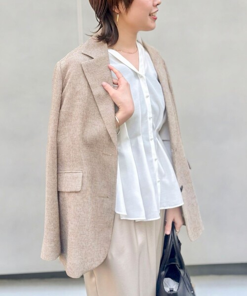 ◇26SS◇ NOLLEY'S ◆Point ・ツイード見えする生地でつくったカラミオーバージャケット ・ポリエステル100%でしわになりにくく、イージーケアが可能 ・手洗い可能で、汗をかく時期にも嬉しい一枚 ・オーバーサイズで体離れもよく、夏場のジャケットを羽織るシーンで活躍! ・程よくトレンド感もあり、実用性も高いジャケット ・裏地無しで軽く、長時間の着用でも疲れにくく羽織れるジャケット ●お取扱い上のご注意● 末永くご愛用頂くために、アテンションタグを必ずご確認の上、着用又はお取り扱い下さい。 気になる商品は、お気に入り登録がオススメです! クーポン情報、入荷情報が、通知されるようになります。 ※手洗い可 ※店頭及び屋外での撮影画像は、光の当たり具合で色味が違って見える場合があります。商品の色味は、スタジオ撮影の画像をご参照下さい。 ※商品画像に関しては出来る限り忠実に表示出来るよう努めておりますが、お客様がご利用のモニターの設定及び特性により、実際の商品と比較し色味に若干の誤差が生じる場合があります。 ※画像の商品はサンプルとなりますので実際の商品と仕様、加工、サイズが若干異なる場合がございます。