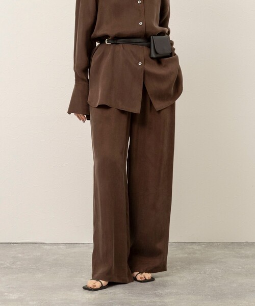 ◇26SS◇ MAQWEL ◆Point ・上品な光沢感が魅力のキュプラサテン素材のワイドパンツ ・とろみのある落ち感で、脚のラインを美しく演出 ・ワイドシルエットで体型カバーしながら抜け感をプラス ・ウエストまわりはすっきり見え、トップスインもきれいに決まる ・軽やかでなめらかな肌触りで、長時間でも快適な着心地 ・シンプルデザインでオンオフ問わず着回し可能 ・ヒールや華奢サンダルを合わせるとより洗練された印象に ・オフホワイト(11)のみ裏付き ・同素材サテンシャツ(6-0039-3-01-004)、サテンノースリーブ(6-0039-3-01-006)、サテンTブラウス(6-0039-3-01-005)、サテンスカート(6-0039-3-06-002)あり ・同素材トップスと合わせたワントーンコーデがおすすめ ●お取扱い上のご注意● 末永くご愛用頂くために、アテンションタグを必ずご確認の上、着用又はお取り扱い下さい。 気になる商品は、お気に入り登録がオススメです! クーポン情報、入荷情報が、通知されるようになります。 ※手洗い可 ※店頭及び屋外での撮影画像は、光の当たり具合で色味が違って見える場合があります。商品の色味は、スタジオ撮影の画像をご参照下さい。 ※商品画像に関しては出来る限り忠実に表示出来るよう努めておりますが、お客様がご利用のモニターの設定及び特性により、実際の商品と比較し色味に若干の誤差が生じる場合があります。 ※画像の商品はサンプルとなりますので実際の商品と仕様、加工、サイズが若干異なる場合がございます。