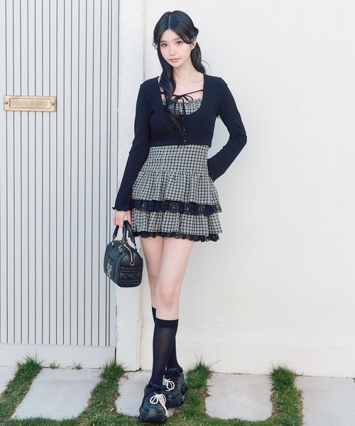 これ一着でおしゃれが完成するワンピセット ■デザイン ・裾にレースを重ねたティアードワンピと、スタイルアップが叶うカーデのセットアイテム。 ・キャミワンピースはふわっと広がるティアードシルエットで、華やかさと細見えを両立します。 ・背中側はシャーリングで伸縮性があるので、体にフィットして着心地も◎ ・カーデは胸元のリボンがポイントで、ショート丈なので着るだけで脚長効果抜群です。 ・オフのみカーデがレース素材です。 ・セットで着るのはもちろん、それぞれ単品でも着回しを楽しめるのも嬉しいポイント。 ■カラー ・オフ/サックス/ブラックの3色展開 ■スタイリング ・セットで着れば簡単にトレンド感のあるレイヤードコーデが完成します。 ・キャミワンピースはインナーやカーディガンを合わせたり、暑い時期には1枚でも着用できロングシーズン活躍します。 ・カーデはお手持ちのキャミワンピやカップ付きインナーに羽織るスタイリングもかわいいです。 ----------------------------- 裏地:ワンピあり、カーデなし 光沢感:なし 透け感:なし(オフカーデあり) 伸縮性:ワンピなし、カーデあり 手洗い:可能 タンブラー乾燥:不可 アイロン:110℃まで ----------------------------- model:164cm ※着用、お取り扱いの際は、商品についている品質表示とアテンションタグを必ずご確認下さい。 ※ご覧のモニター環境や撮影環境により実際の商品と多少色味が異なって見える場合がございます。ご理解の程よろしくお願いいたします。 ※引っかけ注意 ・粗い組織のものや、表面に凹凸があってルーズな組織のもの 表面に糸が浮き出ているものは、ちょっとした不注意から引っかけてしまいがちです。 取り扱いの際は取り扱い絵表示確認の上、十分注意してください。 ・着用時にベルトや、バックや周囲の壁など表面の粗いものとの摩擦や引っかかりに注意してください。 ・水洗いやクリーニングの際にも他の物ものとの引っかかりに注意して下さい。 ■お気に入り登録のおすすめ 【気になるアイテムを登録】 ハートをクリックしてお気に入りに登録すると 完売カラーの再入荷やラスト1点の通知、セールの通知を受けとることができます。 【ブランドを登録】 新商品や再入荷、セール通知など、いち早くブランドの情報を受けとることができます。