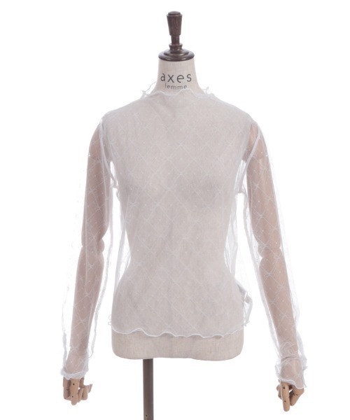 【アイテム説明】【商品紹介】リボン×格子柄のチュールがフェミニンなシアートップスです。伸縮性があり、柔らかいチュールは肌当たりが優しく着心地◎。【デザイン】インナーとして活用もしやすい、トレンドライクなシアーチュールです。袖口にはエアリーなシアー感がこれからの時期にピッタリな、オーガンジーリボンを2つあしらったデザイン。【コーディネート】ジャンスカやニットPOなどに合わせてインナー使いとしてレイヤードスタイルにも、暖かくなってからはインナー合わせでトップス使いにもオススメです。▽ axes femme * アクシーズファム【Concept】axes femmeのお洋服であなたのライフスタイルにほんの少しだけ彩る花が咲きますように。ブランドを通して、彩る花たちが、人と人、お客様や作り手たちの想いが世界中に繋がっていきますように。ベル・エポック(フランスの古き良き時代)にパリジェンヌたちが愛したファッションや文化にルーツをおき、独自のフェミニンスタイルを楽しむブランド**********************.。.: お気に入り登録のおすすめ :.。.∇気になるアイテムを登録∇ハートをクリックしてお気に入りに登録すると完売カラーの再入荷やラスト1点の通知、セールの通知を受けとることができます。∇ブランドを登録∇新商品や再入荷、セール通知など、いち早くブランドの情報を受けとることができます。是非ご利用頂き、お買い物をお楽しみ下さい。.。.: 商品について :.。.・サイト上のカラー名と、お届け商品に記載されているカラー名が異なる場合がございます。・商品の色味は、撮影場所や光のあたり具合、お客様のお使いのPCのモニター環境などにより色味が違って見える場合がございます。予めご了承の上ご注文下さい。.。.: 返品・キャンセルについて :.。.・着用、洗濯後の返品は致かねます。・商品到着後、着用前に商品を確認して頂きますようお願い致します。