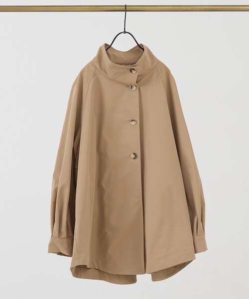 Aライン変形トレンチコート《POINT》裾に向かって広がるAラインが印象的な、変形トレンチ風コート。裏地なしのハーフ丈で、気温差のある季節にもさっと羽織りやすく、長く活躍します。高めのスタンドカラーは、閉じてシャープに、開いて軽やかに。袖口のカフスで袖まくりもでき、着こなしのアレンジが自在です。フレアー感のあるシルエットなので、テーパードパンツやデニムなどすっきりしたボトムと好相性。インナー次第でロングシーズン着られる、頼れる春アウターです。