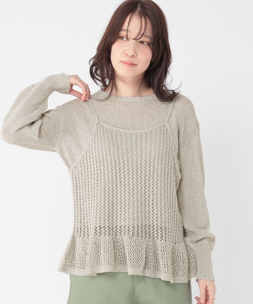シンプルなワンツーコーデもしっかり決まる単品でも着用できるニットプルオーバー×キャミソールセット</font></b>ーーー【素材】TTヤーンにカラーネックがアクセントになった素材を使用。ざらっとした表面感が特徴です。【デザイン】5ゲージで作成されたニットプルオーバー×キャミソールセット。シンプルなプルオーバーに、裾フリルがアクセントになったキャミソールの合わせがバランスの良い一着。セットではもちろん、それぞれ単品でも着用できるので様々な着こなしをお楽しみいただけます。トップス ニット セット セットアイテムーーー【スタイリング】カジュアルにデニム合わせや、綺麗めパンツと合わせた女性らしい着こなしもおすすめ。お持ちのシャツやカットソーに、セットのキャミソールをレイヤードしても素敵です◎