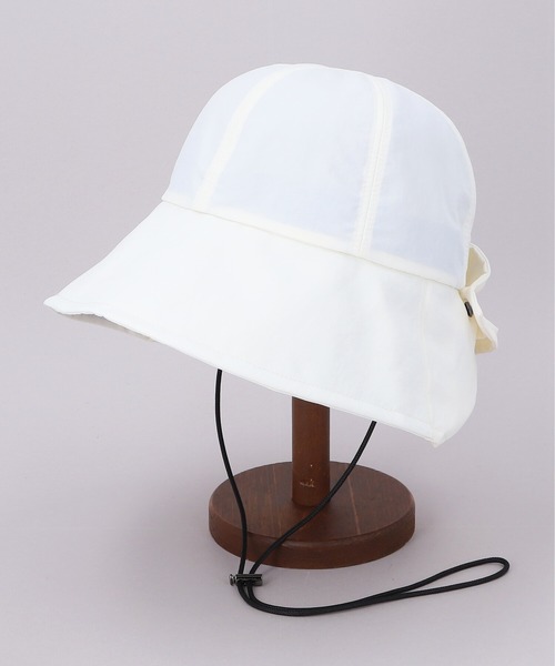 機能性抜群のハット。■デザイン「洗える・UVカット・撥水」と、嬉しい実用性を兼ね揃えたアイテム。あご紐付きで、ちょっとしたアウトドアシーンにもオススメです。■シルエット後ろ部分は、リボン状に畳まれたフラップ付き。首元までしっかり覆えるフォルムに仕上げました。■素材ボディはリサイクルナイロンタッサー生地をセレクト。ブリム部分には、遮光、UVカット率99.9%、遮熱効果もある特殊な芯を使用。ウォッシャブル仕様なのも◎。■お手入れ方法洗濯可能。洗うことにより風合いに多少の変化が起こります。お洗濯の際は単独手洗いで洗濯後、形を整え陰干ししてください。※サイズ調節スベリ仕様(サイズを小さくする際は、調節テープをまっすぐ引き出してください。逆向きに引っ張るとスベリを破損する可能性がございます。)※手洗いの際は付属のアテンションを必ずご参照ください。