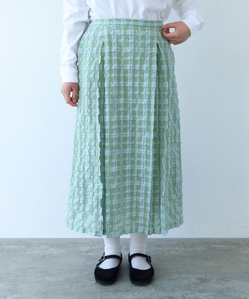 軽やかな透け感とぽこぽことした表面感がかわいいsheer check。 ビュルデサボンがいつもお願いしている、一宮の機屋さんで織っていただきました。 ひらりと風に舞うようなロングスカートに仕立てました。 ウエスト周りはすっきりと、裾に向かってゆるやかに広がるシルエットです。 同じ素材のブラウスやキャミブラウスとセットアップも可能です。 ============================ 透け感:あり 裏地:あり 伸縮性:なし 光沢感:なし ============================ ※素材の特性、お取り扱いの注意 水洗い可・・・中性洗剤使用 アイロン可・・・あて布使用 ・デリケートな素材ですので、激しい運動や極度な力が加われば、目が開いたり目寄れ(織糸が滑り、目が開く)する性質をもっています。 bulle de savon(ビュルデサボン) BRAND CONCEPT 女性、誰もが ふっと子供の頃を思い出し 少女のような気持ちに戻れる服。 bulle de savon =シャボン玉の事 石鹸の泡とか、 においなど、 懐かしい感じ。 設立年月日 1994年8月 ※画像はサンプルです。実際の商品と仕様・加工・サイズ等が若干異なる場合がございます。 ※モデルの着用画像は光の関係で商品の色味が若干異なります。 ※取り扱いの注意については取り扱い表示をよくご確認の上、着用をお願いいたします。 ※工場の生産の都合上、入荷の時期が前後する場合がございます。ご了承ください。