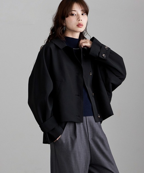 ハイセンスなドルマンスリーブのゆったりサイジングで使い勝手が魅力のライトアウター。 たぽんとした袖が立体感をもたらし、羽織るだけでお洒落なシルエットが生まれます。 ステンカラーとシングルボタンの組み合わせが、クラシカルでマニッシュな雰囲気ながらも、 余白のあるサイジングと丸みのあるボリューム感が女性らしさを保ってくれます。 身幅と袖はゆったりとしたサイジングながらもコンパクトなクロップド丈で、ハイウエストのボトムスとの相性は抜群です。 無理のないメンズっぽさであらゆるシーンで活躍するスプリングアウターです。 etoll. 「For me.」 気ままに自由な服選びで、私だけのファッションを楽しむ女性へ捧げるセレクトショップ。 系統に捉われず、気分を高めたい日や特別な日、 いつでも私の好きを身につけましょう。 自分自身のためにお洒落をしたい気持ちを大切に、 豊かな個性とトレンドを取り入れたアイテムで、少しだけお手本になるようなスタイリングを提案します。 【備考】 ・ポケットあり ・裏地あり ・伸縮性なし ・洗濯可