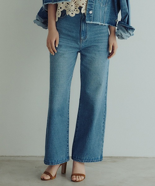 dailyCLIP定番アイテムがバージョンアップこだわり詰まったシルエットで美脚が叶うデニムパンツーーー【素材】綿100%素材を使用。柔らかいタッチで履き心地抜群です。【デザイン】dailyCLIP定番のデニムがバージョンアップして今季も登場。サイズ感をややコンパクトにし、ライトな生地感になりました。自然とスタイルアップが叶い、ワードローブに欠かせない1着です。ーーー【スタイリング】幅広いテイストのトップスと好相性。同素材の「ワイドGジャン」とのセットアップもおすすめです。