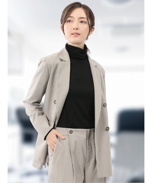 エムエフエディトリアルレディース/m.f.editorial:Womenビリーストライプ ダブルジャケット ベージュ(セットアップ可能)■素材特徴ポリエステルにレーヨンを混紡したウールのような合繊素材です。リアルウールに近い高級感を持ちながらも、合繊ならではの扱いやすさを兼ね備えています。ややカジュアルで軽やかな印象のビリーストライプです。(一般的に不均一な太さや間隔で構成された細い線の事)■機能【マシンウォッシャブル】洗濯機で洗えます。(要ネット・弱水流)【遮熱】熱を遮断することで、衣服内の温度の上昇を抑えます。【UVカット】紫外線を通しにくい生地を使用することでお肌を守ります。■デザインビリーストライプ柄のダブルジャケット(テーラードカラー・センターベント・2フラップポケット・内ポケット付き)です。前ボタンが2列になっているダブルブレストがポイント。袖口は着脱がスムーズなスリット入りで、折り返しても着用可能です。■シルエットかっちりし過ぎない、程良くゆとりのあるシルエットです。キチンと感がありつつ、今っぽい抜け感を演出できます。■コーディネートシアー素材のトップスと合わせると、今っぽさ抜群の着こなしに。綺麗目なブラウス合わせも相性抜群。プライベートからオフィスシーンまでオンオフ兼用で活躍してくれます。■セットアップアイテムは下記品番をご参照ください。・ワイドパンツ:120113063102633・テーラードジレ:120103063115633フィット感:標準シーズン:春夏展開カラー:ベージュ裏地:背裏仕様・胴裏有り・袖裏有り*こちらの商品はセット販売ではなく、単品のみの販売となります。*アテンションタグ・洗濯ネームを御確認の上、着用又は取り扱い下さい。*光の当たる場所や高温多湿になる場所での保管は避けて下さい。*使用の有無に関わらず、経年劣化は進行いたしますのでご了承下さい。*閲覧デバイス・環境により質感・色味に誤差が生じる場合がございます。* ZOZOTOWN お買い物ガイド・商品のお気に入り登録ハートマークをクリックしましょう!完売カラーの再入荷通知や、ラスト1点の通知、セールの通知をお知らせします。・ブランドのお気に入り登録新商品や再入荷など、いち早くお得な情報を受け取ることができます。・最短で翌日お届け商品をカートに入れた後、注文内容の確認ページで「即日配送」を選択していただければ、最短でご注文した翌日にお届け致します。(ZOZOTOWNお買いものガイドをご参照ください)*裾上げ等のお直しが必要な場合は、ZOZOTOWN納品書をご持参していただき最寄のタカキューグループ店舗までお持ちください。お直し代金 お直しにかかる期間は店舗によって異なる場合がございますので、詳しくは店舗スタッフまでお問い合わせください。面接 セミフォーマル セレモニー ビジネス オフィス 出張 営業 セットアップ オフィスカジュアル ビジネスカジュアル 通勤 新生活 婚活 記念日 授業参観 参観日 プレゼント・ギフト ベーシック 定番 20代 30代 40代 アダルト シニア 等幅広いシーンやスタイルに活躍してくれます。