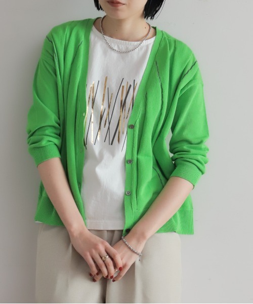 【NOMBRE IMPAIR ノンブルアンペール】 2026 Spring Collection ■ 軽やかに羽織れるシアーカーディガン さらりとした肌触りが心地よい、ハイツイストコットンのVネックカーディガン。 特殊な編み立てによって、シアー感のある配色ストライプを表現しています。 薄手で軽く、暑い時期にも羽織りやすいのが魅力です。 綿100%素材でしわになりにくく、持ち運びにも便利◎ 冷房対策としても頼れる、実用性の高さも嬉しいポイントです。 ■Coordinate ノースリーブワンピースにぱっと羽織ったり、タンクトップにオンしても◎スラックスや落ち感のあるパンツと合わせれば、きちんと感のあるスタイルが完成。オンオフ問わずデイリーに活躍する着まわしやすい一枚です。 洗濯:手洗い可 ※画像の商品はサンプルです。 実際の商品と色味、仕様、サイズ等が若干異なる場合がございます。 ※工場の生産の都合上、納期が変更になる場合がございます。 発送日の前後については予めご了承ください。