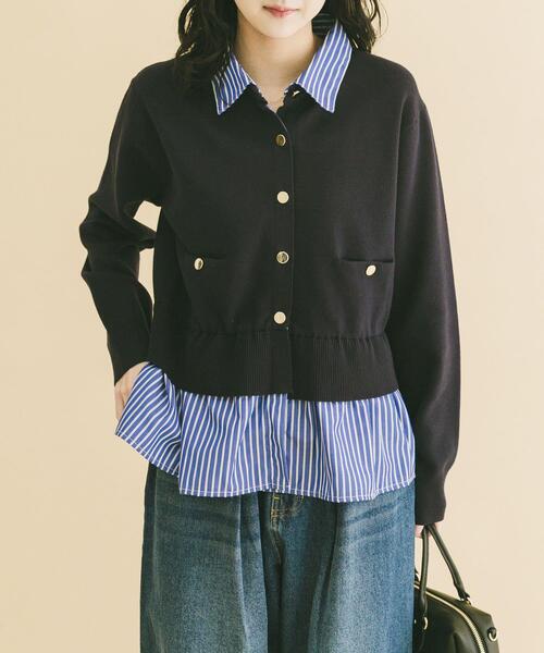 重ね着いらずで完成する、洗練レイヤードニットニットとシャツを重ね着したように見える、フェイクレイヤード仕様のカーディガン。実際に重ねる必要がないため、着膨れせずすっきりとした印象に仕上がります。ニット部分はやや短めの丈感で、自然と腰位置を高く見せてくれるのもポイント。フロントのドットボタンが程よいアクセントとなり、きれいめな中にさりげない華やかさを添える一着です。【2026 Spring/Summer】【26SS】総重量 : 約410g※商品画像は、光の当たり具合やパソコンなどの閲覧環境により、実際の色味と異なって見える場合がございます。予めご了承ください。※商品の色味の目安は、商品単体の画像をご参照ください。▼お気に入り登録のおすすめ▼お気に入り登録された商品は、マイページにて現在の価格情報や在庫状況の確認が可能です。お買い物リストの管理にぜひご利用ください。素材感透け感 : なし伸縮性 : あり裏地 : なし光沢 : なしポケット : ありFree