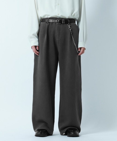 深みのあるフェード感と快適な着心地を両立ーーー■DETAIL水に溶けない特殊な顔料でピグメント加工を施し、深みのある独特なフェード感を演出。洗濯を繰り返すたびに、色落ちの表情変化をお楽しみ頂け、ヴィンテージライクな存在感を際立たせます。ラフな印象のスウェットパンツにリペットを配すことで、ワーク要素と絶妙に相まって、洒落感をプラス。ベルトループを配しながら、イージー仕様に仕立て上げることで、タックインスタイルからベルトレスな着こなしも可能に。■SILHOUETTEゆったりとしたワイドなシルエットで、トレンドのボリューム感を叶えます。裾に向かってストレートなアウトラインに仕立て上げることで、スウェットなのにスラックス感覚で穿いて頂けます。■FABRIC表地と裏地の二枚の生地を繋ぎ合わせた、ダンボール生地で仕立てています。表面は綿、裏面はポリエステルを使用することで、軽さとハリを両立し、ストレッチ性のある快適な着心地です。生地間にある空気層の存在で軽量さを実現していますが、保温性も高めます。■STYLINGフェード感のあるスウェットパンツは、カジュアルモードな着こなしがおすすめ。同生地のパーカーと合わせて頂いても、独特な風合いが「だる着」感をなくし、雰囲気のあるカジュアルセットアップに。今年は、短丈トップスと合わせてメリハリのあるAラインシルエットな着こなしもおすすめ。腰ラインが高く見せられ、スタイルアップ効果が叶います。======■参考サイズM:~175cmL:175cm~======ーーー