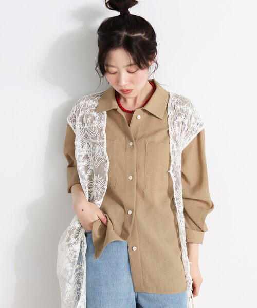 程よいハリ感のあるメッシュ素材を使用した、抜け感たっぷりのオーバーサイズシャツ。 目が細かいメッシュ生地のため、透けすぎず大人の女性が着やすいシアー感を目指しました。 通気性に優れた素材で軽さで春夏にぴったりな快適な着心地。 前を閉じてシャツとしてはもちろん、ボタンを開けて軽い羽織としても活躍。 腰回りをカバーするメンズライクなシルエットと、風に靡くリラクシーな雰囲気で、着るだけでトレンド感のあるスタイリングが完成する一枚です。 ※取り扱いについては、商品についている洗濯表示にてご確認下さい。 ※照明の関係により、実際よりも色味が違って見える場合があります またパソコン・スマートフォンなどの環境により、若干製品と画像のカラーが異なる場合もございます。 ※商品の色味は、商品アップ画像をご参照ください。 【注意事項】 ・画像の商品はサンプルです。 ・サイズ表記はあくまで目安となります。 実際の商品と仕様、加工が若干異なる場合があります。