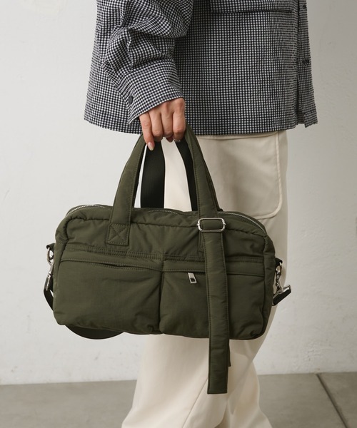【軽量×機能性抜群なミニボストン】シャカっとしたポリエステル100%素材で、軽くてラフに持てるミニボストンバッグ。コンパクトな見た目ながらポケットが豊富で、小物が迷子になりにくい実用的なデザインです。持ち手は長さ調節が可能で、ハンドバッグとしても肩がけとしても使える2WAY仕様。さらに取り外し可能なショルダーストラップ付きで、斜めがけもできるので両手を空けたい日にも活躍します。デイリー使いはもちろん、アクティブなシーンにも頼れる万能バッグです。【商品ポイント】・500mlペットボトル収容可能・内側:オープンポケット×1、外側:ジップポケット×2・ハンド、肩掛け、斜め掛け可能【同素材シリーズ】CMG2061212A0004 マルチポケットヘルメットバッグ----------------------------------------------------■素材ポリエステル100%----------------------------------------------------※着用、お取り扱いの際は、商品についている品質表示とアテンションタグを必ずご確認下さい。※商品タグに記載されている商品名がWEBでの表記名と異なる場合があります。※実際の商品と仕様、加工、サイズが若干異なる場合がございます。※照明の関係により、実際よりもやや明るく見える場合がございます。またパソコンなどの環境により、若干製品と画像のカラーが異なる場合もございます。予めご了承くださいませ。【お気に入り登録】してお得な情報をCHECK!!・「商品のお気に入り登録」で再入荷通知や、ラストの通知、セール通知も受け取ることができます。・「ブランドのお気に入り登録」で新商品や再入荷など、お得な情報を受け取ることができます。