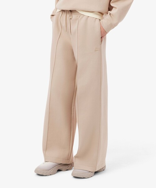 なめらかな表情が高級感を演出するワイドレッグスウェットパンツ体系を拾わず、美しいワイドシルエットとセンタープリーツデザインでどんなスタイルも楽しめる注目のアイテム。・オーガニックコットンとリサイクルポリエステルのブレンドスウェット素材・ツルッとなめらかな表情と光沢感ある風合い・トレンドに寄り添うワイドレッグシルエット・クラシックな上品さをプラスするセンタークリースステッチ・左腰脇にボディと同色のワニロゴパッチRegular Fit