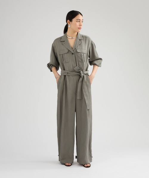 ミリタリーの無骨さとサテンの艶やかさが共存する都会的なオールインワン ーーー -Design- ・ミリタリーのエッセンスを感じさせつつ、都会的で女性らしい佇まいに仕上げた一着。 ・ドレープ感のある素材を採用することで、カジュアルすぎないエレガントさをプラス。 ・ウエストのリボンを絞ることでシルエットにメリハリが生まれ、スタイルを美しく演出。 ・裾に配されたタブを絞れば、足元に変化をつけた着こなしも可能。 ・胸元はV開きで女性らしく、ボタンを上まで閉めればユニフォームライクで格好いい印象に。 -Fabric & Care- ・緯糸にテンセルとリネンをブレンドした糸を使用した、高密度なサテン組織の織物。 ・リヨセル特有のしっとり滑らかな風合いと、サテンの上品な光沢が魅力。 ・リネンのスラブ感がミックスされることで、独特の表情とナチュラルな質感を両立。 ・美しい落ち感がありながら肌離れも良く、夏場でも心地よく着用できる素材感。 ーーー 【Chaos(カオス)】 混沌とした‘カオス’の時代にあっても、自由な感性と美意識で、自分らしく生きる大人の女性へ。 素材とディテールにこだわり、洗練された‘大人のための上質な日常着’を提案します。 ※商品の取り扱い方法につきましては、タグ等に記載されている「取り扱い上の注意」「洗濯表示」をご確認ください。 ※サンプルにて撮影をしておりますので、実際の商品とは仕様や加工・サイズ等が若干異なる場合がございます。 ※屋外での撮影画像は、光の当たり具合で色味が違って見える場合があります。あらかじめご了承ください。なお商品の色味は、スタジオ撮影の画像をご参照ください。 ....................≪INFORMATION≫...................... ▼商品のお気に入り登録をおすすめします▼ ♡をクリック!完売カラーの再入荷や、ラスト1点の通知、セールの際の通知を受ける事ができます。 ▼ ブランドのお気に入り登録 ▼ 新商品や再入荷など、ブランドのお得な情報をいち早く受ける事が出来ます。 こちらもぜひご登録ください。