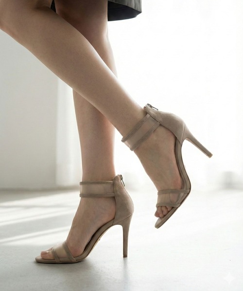 透け感のあるチュールストラップが、足元に抜け感と女性らしさを添えるサンダル。異素材のコンビネーションが洗練された印象を与え、さりげなくモードな雰囲気も演出します。バックファスナーで着脱しやすく、チュール素材で優しくホールドする2本ストラップデザイン。デニムなどのカジュアルスタイルにはもちろん、きれいめな装いにもマッチする、シーズンムード高まる一足です。 【 素材・ヒール・サイズ 】 □ 素材:チュール/本革 □ ヒール高:9.5cm □ サイズ展開:22.0cm~24.5cm □ 原産国:日本 【 BRAND 】 SEVEN TWELVE THIRTY/セブントゥエルブサーティ 履く人を、より洗練されたファッションステージの高みへ誘うシューズブランド。 セヴン・トゥエルヴ・サーティ(7・12・30)は人間の本能の周期を意味し、女性の本能の赴くままに無限の美の可能性を追求してほしいという願いが込められています。 優秀な職人たちによってつくられたコレクションを揃え、美しいモノを追求する女性たちに、その答えを与えてくれます。 シルエットの美しいパンプスを中心に、ブーツやサンダルなどのシーズンアイテムを取り揃え、オフィスや通勤などの普段使いはもちろん、結婚式・二次会・パーティなどのラグジュアリーなスタイルにも活躍できるアイテムを多数展開しています。 ※踵(かかと)部分の穴は、製造過程の中で木型と革を留めておく釘を打った跡です。商品不良ではありませんのでご安心ください。 ※商品の画像はサンプル品を撮影しているため、実際の製品とは仕様や加工、色味が若干異なる場合がございます。 ※素材の特性について 天然素材や本革(天然皮革)を使用している商品については、色調や柄模様に個体差があるほか、キズやシワ、色ムラ、擦れなどが見られることがございます。また、摩擦や湿気、水濡れなどの使用環境によって、色落ち・色移りが生じる場合があり、素材の特性としてあらかじめご了承ください。革の品質保持のため、できるだけ濡らさないようご注意下さい。