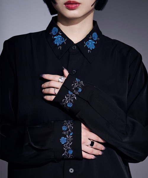 "モードを軸にするジェンダーレスブランド" 薔薇の花を襟とカフスにあしらったトロミシャツ【イージーケアとUVカットの機能性付き】イージーケア(W&W性3.0級)/UVカット(98.5%カット)シワになりにくく、速乾性優れたエルノ独自の素材を採用。洗濯やアイロン掛けの手入れも簡単に可能です。襟には上品で華やかな薔薇を添えカフスには茎から咲く薔薇の刺繍を施しました。刺繍はボディごとに異なる配色となっておりそれぞれ全く違った印象に。適度なハリ感とサラッと落ち感のある生地で程よく体に馴染むストンと落ちるシルエット。上品なラウンドカットで立体感のあるフォルムはレイヤードもバランスよく着こなせます。リラクシーな印象ながらきちんと感も出る絶妙なサイジングです。同時発売で大人気のケープジャケット合わせや刺繍ラップパンツ合わせで刺繍を主張するサブカルモードな合わせもおすすめです。■おすすめスタイリングアイテム■・トレンチケープジャケット(658849)・カーブラインパンツ(658853)・フラワー刺繍ラップワイドパンツ(647534)■サイズ丈参考■ユニセックスサイズ展開~163cm Sサイズ160~172cm Mサイズ170cm~ Lサイズ------------------------------------------------------------------ellnoLoset_officialインスタグラムでも商品情報をご覧いただけます。インスタライブで新作アイテムをご紹介。 ------------------------------------------------------------------- 【Ellno Loset】クールなモノトーンと今の気分をMIXしたモードブランド。ジェンダーレスで何にも縛られない自分の為に着る媚びないファッションを提案します。-------------------------------------------------------------------------※洗濯、お取り扱いの際は、商品に付いているタグから【洗濯表示】【品質表示】と【アテンションタグ】を必ずご確認ください。 ▼商品のお気に入り登録 完売カラーの再入荷通知や、ラスト1点、セールの通知をお知らせ致します。▼ブランドお気に入り登録 新商品や再入荷など、いち早くブランドの情報を受け取ることができます。 ※サイトに表示されているカラー名と実際のお届け商品に記載されているカラー名が異なる場合がございます。