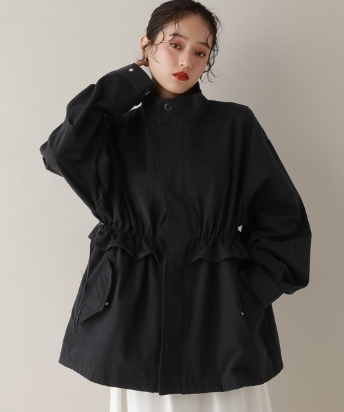 大好評のミリタリーブルゾンが今年も登場。 ■おすすめの着こなし ☆パンツスタイルには・・・ ベーシックにデニムと合わせる、きれいめカジュアルスタイルが◎ ワイドパンツやスウェットパンツと合わせて、メンズライク風に着るのもおすすめです。 ☆スカートスタイルには・・・ フレアスカートと合わせる、ほんのり甘めな着こなしがおすすめです。 ミリタリー感のあるアウターなので、甘すぎずきれいめな印象で着用いただけます◎ ーーー ■ポイント 昨年好評だったブルゾンが今年も登場。 裾にはドローコードを仕込んでいるので、お好みのシルエットで着用いただけます。 コードを絞ればフロントからバックまでフリルデザインになるので、女性らしい印象に◎ ウエストマークができてすっきり見えするのも、嬉しいポイントです。 ルーズすぎないサイズ感なので、着るだけで今年らしい着こなしも叶います。 フロント部分にはポケットも付いているので、アクティブシーンでも活躍するアウターです。 きれいめからカジュアルまで幅広く着こなせる一着に仕上がりました。 ■素材 柔らかく、肌触りの良いコットン100%素材を使用。 着心地も良い一着に仕上がりました。