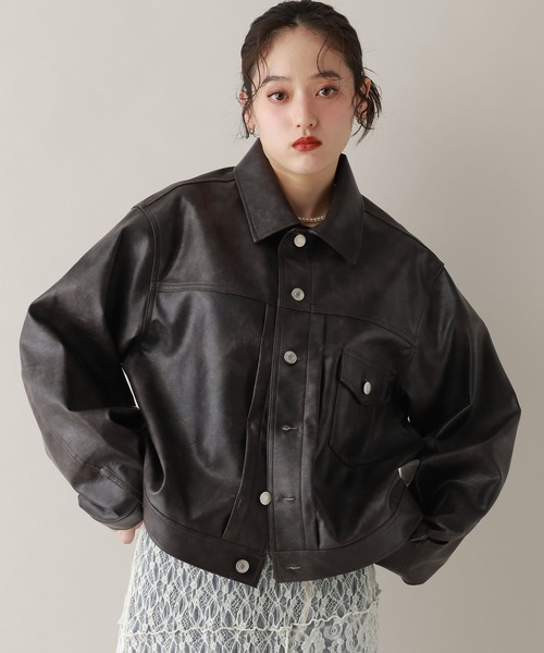こなれ感抜群のトラッカージャケット。 ■おすすめの着こなし ☆パンツスタイルには・・・ 程よくコンパクトなシルエットなので、ボリュームパンツと合わせるのが◎ フリルブラウスなど甘めなアイテムと合わせるのもおすすめです。 ☆スカートスタイルには・・・ きれいめなアウターなので、フレアスカートなど女性らしいアイテムと合わせるのが◎ パンツレイヤードスタイルに合わせれば、今年らしい着こなしが叶います。 ーーー ■ポイント 一枚で主役級のトラッカージャケットが登場。 程よくコンパクトなシルエットなので、女性らしい印象で着用いただけます。 スウェード生地・フェイクレザーの2デザインからお好みのスタイルに合わせて着用いただけます。 フロント部分にはステッチの切替が施されていて、立体感も◎ 胸ポケットが付いているので、スタイリングのさりげないアクセントになります。 きれいめからカジュアルまで、幅広いスタイルを楽しめる一着です。 ■素材 程よい厚みで、光沢感が綺麗な混紡素材を使用。 ロングシーズンお使いいただけること間違いなしなアイテムです。
