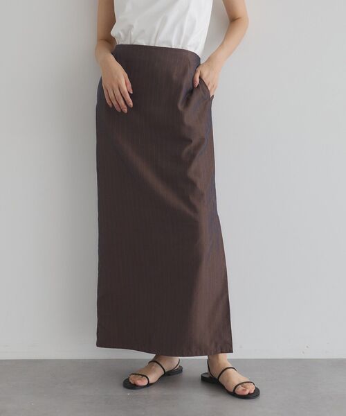 アシンメトリーなサイドベンツが洒落感溢れるナロースカート。すっきりしたIラインシルエットにストライプ柄がスタイリッシュなひと品です。ウエストバックゴム仕様のリラクシーな着用感も魅力的。落ち感のある滑らかなテキスタイルの上品な艶めきが着映えを叶えてくれるおすすめのアイテムです。透け感[なし]生地の厚さ[薄手]光沢感[ややあり]伸縮性[なし]裏地[なし]ポケット[あり]※モデル着用画像は、光の当たり具合で色味が違って見える場合がございます。※お使いのモニター環境によって商品の色味が違って見える場合がございます。▼ 気になった商品はお気に入り登録がおすすめ ▼商品ページ内の ♡ ハートマークをクリックしてお気に入り登録しておけば、 他アイテムとの比較やお値下げのチェックも楽に行えます!ぜひ、お買い物する際にご活用下さい。■GARAGE OF GOOD CLOTHING(ガレージ オブ グッド クロージング)ブランドコンセプトは「Whim woman~気まぐれな女性~」ハイブランドもデニムも、古着も、ベーシックもメンズだって着てみたい。そんな自由なファッションを楽しみたい女性の心を満たせるSHOPです。