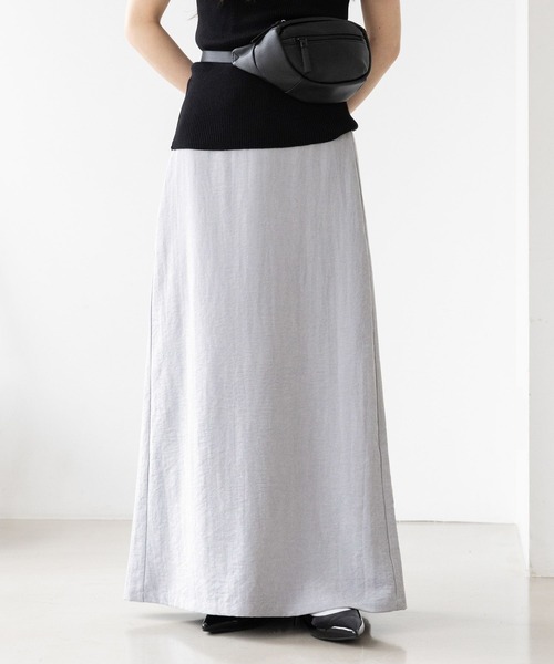 マットな生地感でお洒落見えする、こなれスカート。 ■おすすめの着こなし ☆カジュアルスタイルには・・・ ゆとりのあるルーズなシャツと合わせる、カジュアルな着こなしが◎ デニムジャケットやレザージャケットとも好相性な一着です。 ☆きれいめスタイルには・・・ フリルブラウスやコンパクトニットなどと合わせる、女性らしい着こなしが◎ 華奢なミュールなどと合わせれば、落ち着いた印象で着用いただけます。 ーーー ■ポイント 表面のシワ感×マット生地が上品に魅せてくれるスカート。 布分量を大きく取っているので、Iラインスカートながらも楽な穿き心地に。 窮屈感がなく、体のラインを拾いにくいのもポイントです。歩きやすさも◎ ウエストゴムのイージー仕様なので、ノンストレスで穿けるのも嬉しいポイント。 きれいめからカジュアルまで、幅広く楽しめるアイテムに仕上がりました。 ■素材 柔らかく、肌触りの良いポリエステルとナイロンの混紡素材を使用。 マットな生地感なので、上品見えが叶います。