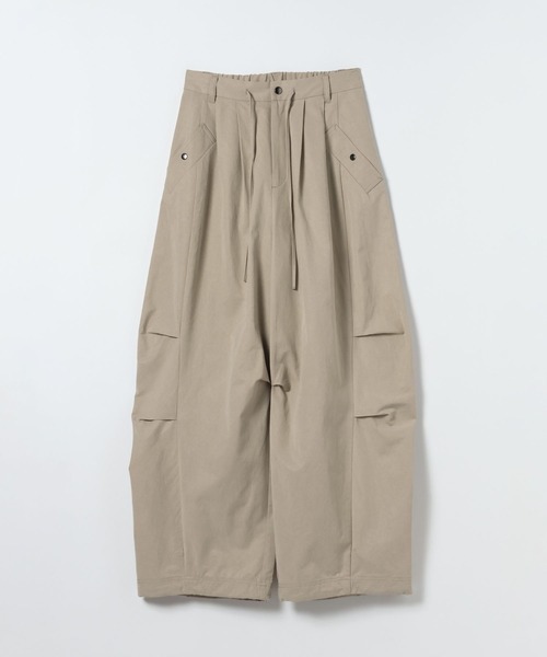 ーーー今年らしいミリタリーデザイン★スタイリングに抜け感を演出するボリュームパンツーーー■Designタックの分量や深さにこだわった、綺麗なシルエットが魅力のパンツ。ハリと落ち感を兼ね備えた生地で仕上げることで程よいボリューム感を演出。無骨な印象になり過ぎず、身体のラインを拾いにくいところが◎ウエストは、フロント部分はドロスト、バック部分はゴム仕様で、ストレスフリーな着心地です。裾にもドロストを施すことで、シルエットや丈感の調節が叶います。■Material柔らかく落ち感のある生地で、着心地が良いアイテムです。身体のラインを拾いにくいシルエットで、裏地がなくても透け感が気になりにくく◎■StylingコンパクトなカーディガンやヘンリーネックTに合わせるとトレンドのスタイリングに♪フリルやレースの甘めトップスと合わせると、大人カジュアルなスタイルに仕上がります。-INFORMATION-◆お買い物をよりお楽しみいただく為に『♡』をクリックしてお気に入り登録がおすすめ!・完売カラーの再入荷通知や、ラスト1点の通知、セールになった際も通知を受け取ることができます★◆ブランドのお気に入り登録新商品や再入荷など、お得な情報を受け取ることができますので、是非ご登録ください♪※屋外の光や照明の当たり具合で、実際の商品の色味とカラー別画像の色味に違いが発生する場合がございます。 商品の色味はスタジオ撮影の詳細画像にてご確認ください。