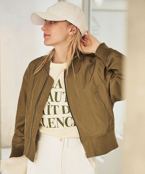 スカートにも合わせやすい美シルエット形状記憶タイプのポリエステル生地を使用したミリタリーブルゾン。ハリと美しいキープ力でシルエットが崩れにくく、カジュアル過ぎない洗練された表情が特徴です。袖口には縫い目のない編み立てリブ(シームレスリブ)を採用し、着用時のストレスを軽減するとともにきれいな仕上がりに。ミリタリーテイストを残しながらスカートやワンピースと合わせて女性らしく着られるため、デイリー~きれいめまで幅広く活躍します。カジュアル:ロゴT+ワイドデニム+スニーカーで抜け感ある大人カジュアルスタイル。オフィスカジュアル:シンプルなブラウス感覚でテーパードパンツ+ローファー。ブルゾンを羽織れば程よくきちんとした印象に。モード寄り:ブラックのワイドパンツ+バブーシュ、キャップでユニセックスに。短め丈のブルゾンがバックのコクーンシルエットを際立たせる。【注意事項】※商品画像は、光の当たり具合やパソコンなどの閲覧環境により、実際の色味と異なって見える場合がございます。あらかじめご了承ください。※画像の商品はサンプルです。実際の商品と仕様、加工が若干異なる場合があります。※サイズ表記はあくまで目安となります。※その他の予約商品、通常商品との同時決済はできません。※入荷状況により、お届け予定が前後する場合があります。※お客様への発送が店頭販売より遅れる場合もあります。※追加生産商品は、一部の店舗、通販で販売中の場合がございます。予めご了承下さい。※商品を使用前に、タグ等に記載されている「取り扱い上の注意書き」「洗濯表示」を必ずご確認ください。※商品に不良が無い場合、包装紙および箱の彼損がございましても発送いたします。あらかじめご了承ください。