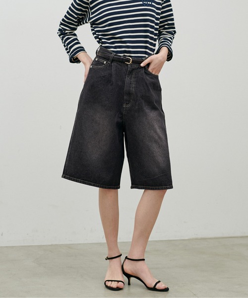 【2026SS LARUTA】 デニムタックハーフパンツ ■Design フロントに施したタックデザインが印象的な、きれいめに穿けるデニムハーフパンツ。 カジュアルなデニム素材ながら、程よくゆとりのあるシルエットと 膝丈バランスで、大人が取り入れやすい一本に仕上げました。 ウエスト周りはすっきりと見える設計で、トップスをインしてもバランスよく決まります。 ラフになりすぎない絶妙な丈感とシルエットにこだわったアイテムです。 ■Styling コンパクトなニットやカットソーを合わせてすっきりまとめるのはもちろん、 オーバーサイズのシャツやジャケットと合わせた抜け感のあるスタイリングもおすすめ。 足元はヒールやローファーで女性らしさをプラスすると、大人っぽい印象に。 シーズンレスに活躍し、ソックス合わせでトレンド感を楽しむ着こなしも◎。 ■Fabric 程よい厚みのデニム素材を使用。 ハリ感がありながらも動きやすく、デイリーに取り入れやすい生地感です。 ====================== 透け感:なし 裏地:なし 伸縮性:なし 光沢感:なし 生地感:程よい厚みのあるデニム素材 ====================== ※手洗いの際は他の物と分けて単独で洗ってください。 ※汗や雨などで濡れた状態や強い摩擦等で、他の商品に色移りする可能性がありますのでご注意ください。 ※色落ち、色移りすることがありますので、漬け置き洗いや、濡れた状態での放置はお避けください。 ▼ コンセプト <LARUTA> シンプルだけど洗練されていて、それでいて自然体。 着飾るよりも着ていてリラックスできる、そんなお洋服を纏いたい気分。 ※着用、お取り扱いの際は、商品に付いている品質表示とアテンションタグを必ずご確認ください。 【お気に入り登録でお得な情報がいっぱい】 ・「商品のお気に入り登録」で再入荷通知や、ラスト1点の通知、セール通知をいち早く受け取ることができます。 ・「ブランドのお気に入り登録」で新商品や再入荷など、お得な情報を受け取ることができます! ※店舗の入荷時期は商品によって異なります。 店頭の在庫状況につきましては各店舗にてお問い合わせください。 ※撮影時の光の関係で、画面上の画像と実際のお色とでは若干の色差が生じる可能性がございます。 また、ご覧いただいているモニター画面や、お使いのブラウザによっても、お色の違いがございますことをあらかじめご了承くださいませ。