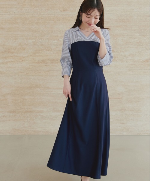 【2026SS natural couture】ドッキングシャツワンピース■Design 異なる素材を組み合わせた、デザイン性の高いドッキングワンピース。トップス部分は、涼しげな素材感のシャツ生地を使用し、クリーンで爽やかな印象を与えます。すっきりとしたVネックは、デコルテを美しく見せ、女性らしさを引き立てます。ワンピース部分は、上品なIラインシルエットで、スタイルアップ効果も期待できます。シンプルなデザインながらも、計算されたシルエットと異素材の組み合わせが、いつものコーデをワンランクUP◎■Styling一枚でコーディネートが完成するワンピースは、忙しい朝にも頼れるアイテム。足元は、パンプスやサンダルを合わせれば、きれいめな印象に。スニーカーを合わせれば、カジュアルダウンした着こなしも楽しめます。アクセサリーは、華奢なネックレスやイヤリングをプラスして、上品さをプラスするのがおすすめです。季節に合わせて、カーディガンやジャケットを羽織れば、ロングシーズン活躍します。普段使いはもちろん、ちょっとしたお出かけや、オフィスシーンにも対応できる、汎用性の高い一着です。■Fabric トップス部分はさらりとしており、スカート部分は滑らかな生地感。※サイズ補足ウエスト:71㎝~81.5㎝※摩擦や、汗や雨などで濡れた時は他の衣料や下着に(特に白)物に色移りする場合がありますので、ご注意ください。クリーニングの際は、多少色落ちすることがありますので、単品洗いを推奨しております。===================お手入れ方法:手洗い伸縮性:後ろゴム部分あり裏地:ありポケット:なし透け感:ホワイト系袖部分あり光沢感:なし生地感 :さらりとした生地感===================※着用、お取り扱いの際は、商品に付いている品質表示とアテンションタグを必ずご確認ください。【お気に入り登録でお得な情報がいっぱい】・「商品のお気に入り登録」で再入荷通知や、ラスト1点の通知、セール通知をいち早く受け取ることができます。・「ブランドのお気に入り登録」で新商品や再入荷など、お得な情報を受け取ることができます!※店舗の入荷時期は商品によって異なります。店頭の在庫状況につきましては各店舗にてお問い合わせください。※撮影時の光の関係で、画面上の画像と実際のお色とでは若干の色差が生じる可能性がございます。また、ご覧いただいているモニター画面や、お使いのブラウザによっても、お色の違いがございますことをあらかじめご了承くださいませ。202602132026SS_natu26SS