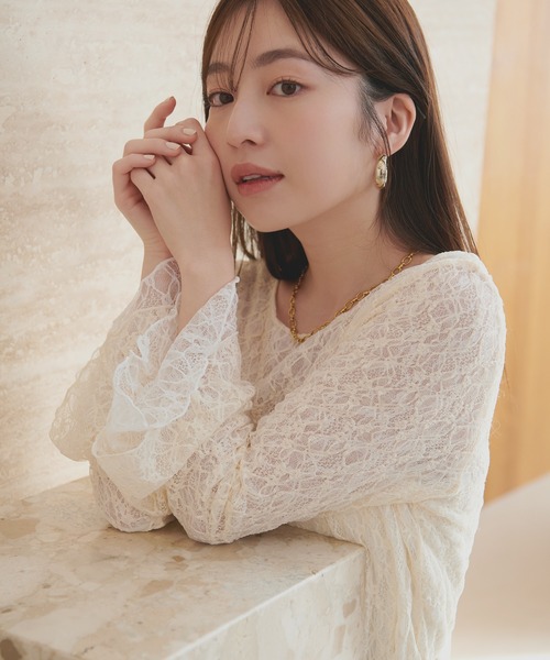 【2026SS natural couture】フレア袖リバーシブルレース■Design フェミニンなレースデザインが印象的なトップスです。袖口に向かって広がるフレアシルエットが、手元を美しく演出し、より華やかな印象に。デコルテを美しく見せるネックラインは、上品で洗練された印象を与えます。また、リバーシブル仕様になっているため、その日の気分やコーディネートに合わせて、レースの表情を変えて楽しむことができます。■Styling普段使いには、デニムやチノパンと合わせてカジュアルダウンした着こなしがおすすめです。レースの甘さを程よく抑え、大人のこなれ感を演出できます。足元はスニーカーやフラットシューズで軽快にまとめると、よりデイリーユースしやすいスタイルに。また、きれいめなパンツやスカートと合わせれば、パーティーシーンにも対応できる、上品なスタイリングが完成します。アクセサリーは、パールのネックレスやイヤリングを合わせれば、よりフェミニンな印象に。シンプルなゴールドやシルバーのアクセサリーを合わせれば、洗練された大人の女性らしさを演出できます。ジャケットやカーディガンを羽織れば、フォーマルな場にも対応できるきちんと感をプラスできます。インナーの色を変えて、レースの透け感を楽しむのもおすすめです。■Fabric さらりと肌触りで、軽やかな着心地。着用時やクリーニングの際は、レースの引っ掛けにご注意ください。===================お手入れ方法:手洗い伸縮性:あり裏地:なし透け感:あり光沢感:なし生地感 :さらりとした生地感===================※着用、お取り扱いの際は、商品に付いている品質表示とアテンションタグを必ずご確認ください。【お気に入り登録でお得な情報がいっぱい】・「商品のお気に入り登録」で再入荷通知や、ラスト1点の通知、セール通知をいち早く受け取ることができます。・「ブランドのお気に入り登録」で新商品や再入荷など、お得な情報を受け取ることができます!※店舗の入荷時期は商品によって異なります。店頭の在庫状況につきましては各店舗にてお問い合わせください。※撮影時の光の関係で、画面上の画像と実際のお色とでは若干の色差が生じる可能性がございます。また、ご覧いただいているモニター画面や、お使いのブラウザによっても、お色の違いがございますことをあらかじめご了承くださいませ。202602132026SS_natu26SS