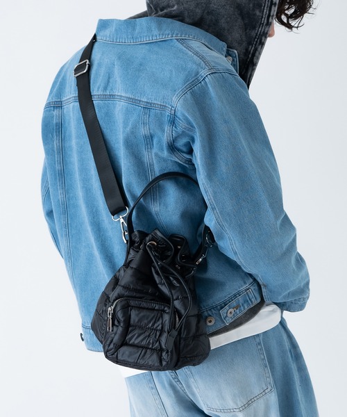 コーデを格上げ メタリック パフ ドローストリング ショルダーバッグ●ギラつきすぎない上品な光沢感●メタリックナイロンでお手入れも簡単、雨の日も安心●バッグ上部は巾着のように絞れるドローコード付き●ブラック、シルバーの2色展開トレンドの発信地となった韓国セレクトのアイテム。ストリートやアメカジと、どんなスタイルのファッションにも取り入れやすくメンズはもちろん、レディースにもオススメです。