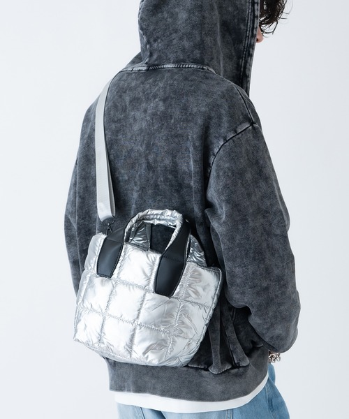 メタリック キルティング ショルダーバッグ●ギラつきすぎない上品な光沢感●メタリックナイロンでお手入れも簡単、雨の日も安心●ミニトートバッグとしても使える2WAY仕様●洗練されたメタリックシルバーがコーデのアクセントにトレンドの発信地となった韓国セレクトのアイテム。ストリートやアメカジと、どんなスタイルのファッションにも取り入れやすくメンズはもちろん、レディースにもオススメです。