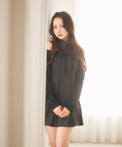 TITTY&CO.2026SS collection♡ストライプリボンノースリワンピース♡繊細なストライプ柄とフロントのリボンディテールが目を引くノースリーブワンピース。ウエストから広がるプリーツシルエットが女性らしいラインを美しく演出します。甘さのあるデザインながら、落ち着いたカラーで大人っぽく着こなせる一枚。1枚で主役になる、上品なガーリースタイルが完成します。[detail]縦ラインを強調するストライプ柄フロントのリボン&フリルデザインが華やかなアクセントウエスト切替でスタイルアップ効果◎ふんわり広がるプリーツスカートシルエット1枚でもレイヤードでも着回し可能[styling]リブニットショートボレロ(品番:TCGNS261008)と合わせてセットアップ風に着るのがおすすめ。ブラウスやシアートップスをレイヤードしてクラシカルにタートルニットを合わせて秋冬スタイルにも◎ロングブーツやパンプスと合わせてフェミニンにジャケットを羽織ればきれいめコーデにも対応【商品のお気に入り登録】完売カラーの再入荷や、セール通知などお得な情報を受け取ることができます。ぜひご登録下さい♪【ブランドのお気に入り登録】新作入荷や再入荷、セールやクーポンイベントなど注目のブランド情報を受け取ることができます。ぜひご登録ください!!※照明の関係により、実際よりも色味が違って見える場合がございます。また、パソコン・スマートフォンなどの環境により、若干製品と画像のカラーが異なる場合もございます。予めご了承くださいませ。※画像の商品はサンプルです。実際の商品と仕様・加工・サイズが若干異なる場合がございます。また、生産時期により、サイズやカラーに誤差が生じる場合がございます。予めご了承くださいませ。
