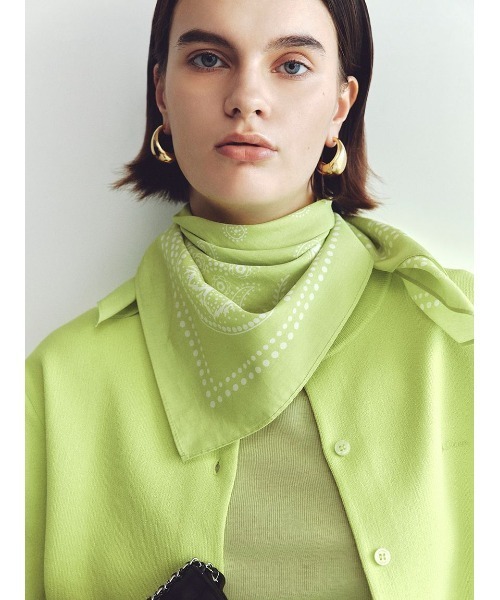 【コットンシルクのリッチな質感で、肌にも心地よいスカーフ。スタイリングに取り入れやすいバンダナ柄も◎】 【Design/Styling】 程よい光沢感が女性らしく美しい、綿シルクのスカーフです。 天然素材ならではの、さらりとした質感がリッチで、心地よく纏うことができます。 定番のバンダナ柄はクセがなく、スタイリングに合わせやすいのもポイント。巻くだけで、アクセントになるデザインです。 顔周りや首元、手、小物に結ぶなど、アレンジ自在。アイデア次第でたっぷりと楽しめる一枚です。 【Fabric】 コットン70%×シルク30%で、程よい光沢が楽しめるリッチな素材感です。 カラーは3色をご用意。穏やかな配色も取り入れやすいポイントです。<LIME>、<BRW>、<PNK>で展開しています。 ※照明の関係により、実際よりも色味が違って見える場合があります。 またパソコン・スマートフォンなどの環境により、若干製品と画像のカラーが異なる場合もございます。予めご了承ください。 商品の色味は、商品単品画像をご参照下さい。 ※商品画像はサンプルのため、色味やサイズ等の仕様に変更がある場合がございますので、予めご了承ください。