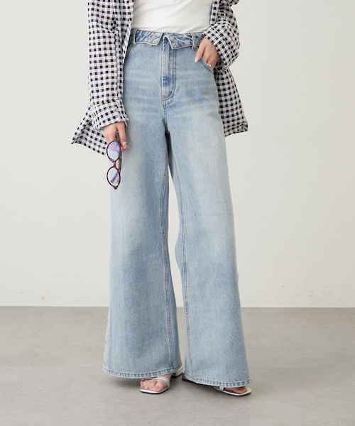ボタンスリットがアクセントに◎脚をキレイに魅せるフレアデニム●デザイン・裾に施されたボタン×スリットデザインがポイントのフレアデニム。・ウエスト部分が折り返されたデザインでスタイリングにこなれ感をプラスしてくれます。・ひざ下から広がるフレアシルエットで、自然と脚長効果が期待できるのも魅力です。●スタイリング・コンパクトなトップスを合わせて、ウエストデザインを見せるとスタイリングのアクセントに。・ブラウスやジャケットと合わせれば、大人っぽいキレイめカジュアルにまとまります。・足元はヒールやポインテッドトゥで女性らしく、スニーカー合わせでラフに外すのもおすすめです。●おすすめスタイリングアイテム襟付きスキッパーシャツマルチリボンブラウスベルト付きシアージャケット<製品の取り扱い注意>・雨や汗による、濡れた状態での使用は、色落ちや色移行の原因となる場合がありますので十分にご注意下さい。・摩擦により淡い色のものとの重ね着や、イス、バッグ、ベルトなどへ色移りしますのでご注意ください。・本製品は洗濯の繰り返しや着用による摩擦などで色が薄くなっていきます。ご了承ください。・濃色は摩擦(特に湿った状態での摩擦)や、汗や雨などでぬれた時は他の衣料や下着に色が移る事がありますので、ご注意下さい。-----------------------------------------------------洗濯:30度限度 洗濯機「弱」/石油系ドライクリーニング可アイロン:低温120℃まで スチームなし(あて布使用)タンブル乾燥:不可伸縮性:なし光沢感:なし生地の厚さ:普通------------------------------------------------------▼商品のお気に入り登録お気に入りアイテムのセール通知や完売カラーの再入荷通知、在庫残り1点などの通知を受け取ることができます。▼ブランドのお気に入り登録新商品や再入荷、セール、クーポン配布などお得な情報をいち早く受け取ることができます。▼メルマガ登録mysticのお得な情報やニュースを一足先にお届けします。------------------------------------------------------商品について※ご注文いただいた予約商品のお届け時期の確認は、注文履歴ページより行えます。※サイト上のカラー名と、お届け商品に記載されているカラー名が異なる場合がございます。※商品の色味は、撮影場所や光のあたり具合などにより色味が違って見える場合が御座います 。 また、お客様のお使いのPCのモニター環境などにより色味が違って見える場合が御座います。予めご了承の上ご注文下さい。