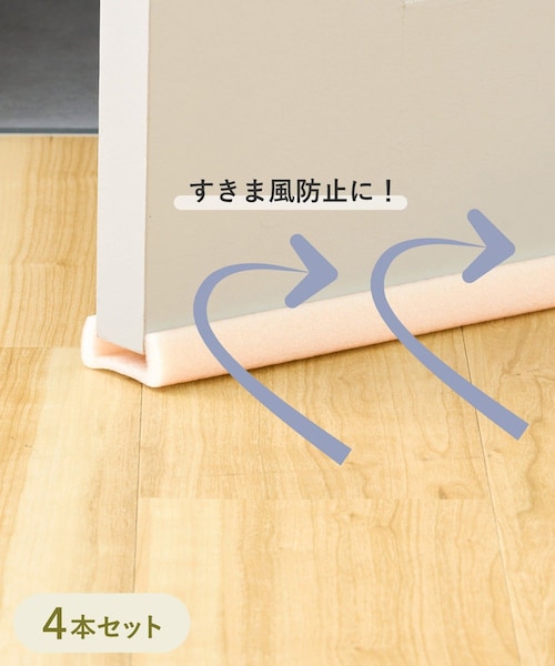 ●肌寒い季節にすきま風を防ぐドラフトストッパー◎●ドアの下に挟み込むだけで、簡単に取り付けができます。●取り付ける部分のサイズに合わせてカッターなどでサイズ調節ができます。●柔らかい素材なので床や壁などを傷つけずにお使いいただけます。■仕様■セット内容:4本《ご使用方法》商品詳細画像をご覧ください。《ご使用上の注意》●本品は室内ドア用です。●本品を取り付けたままドアを無理に開閉しないでください。●サイズが合わない場合はご使用にならないでください。●破損した場合はご使用にならないでください。●品質を損ねるおそれがございますので、強く引っ張ったり、引っ掛けないようご注意ください。●直射日光などが当たることにより、変色・退色・強度劣化する可能性がございます。●高温多湿な場所や直射日光のあたる場所での保管、放置はお避けください。●お子様やペットの手の届かない場所で保管してください。●火気に近づけないでください。●用途以外のご使用はお避けください。
