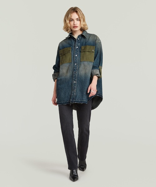 ■アイテム説明 異素材のコントラストが映える、存在感ある一着。 Hybrid Overshirtは、ヴィンテージライクなウォッシュデニムに異素材ポケットを組み合わせた、オーバーサイズシルエットのシャツジャケットです。 ゆったりとしたフィット感により、シャツとしてもライトアウターとしても活躍。 カラーブロックデザインが視線を引きつけ、シンプルなスタイリングにも奥行きを与えます。 ■DETAIL ・オーバーサイズフィット ・スナップボタン留め ・カラーブロックデザイン ・シャツカラー ・フロントフラップポケット ・ロールアップ可能なスリーブデザイン ■FABRIC 75% 再生型コットン, 25% リサイクルコットン 程よい厚みのデニム素材にウォッシュ加工を施し、 自然な色落ちとやわらかな風合いを表現。 ヴィンテージ感がありながらも重くなりすぎず、 シーズンを問わず着回しやすい仕上がりです。 ■STYLING ・Tシャツの上から羽織ってラフに ・細身のボトムと合わせてメリハリのあるバランスに ・ワイドパンツと合わせて抜け感のあるストリートスタイルにも 一枚で主役になり、レイヤードでも映える汎用性の高いアイテムです。 G-STARについて 固定観念の破壊を掲げ、解剖学的な視点を取り入れたデザインのコレクションを展開するアムステルダムのストリートブランド。 1989年に誕生して以降、バイカージーンズ「ELWOOD」が象徴するアヴァンギャルドなジーンズや、ワーク・ミリタリーのヴィンテージを現代的に洗練したウェアで構成するコレクションがアンダーグラウンドなストリートピープルの認知を獲得し、ヨーロッパを中心に確固たるポジションを確立しました。 創造性とクラフトマンシップに敬意を払い、エレガントでありながらも反逆的なスタンスが生み出すプロダクトが、世界のセレブリティやアーティストをはじめとした独自のスタイルを持つ人々に愛されています。 《お気に入り登録》でお得な情報をゲット。 ・「商品のお気に入り登録」で再入荷通知や、ラスト通知、セール通知も受け取ることができます。 ・「ブランドのお気に入り登録」で新商品や再入荷など、お得な情報を受け取ることができます。 ※照明の関係により、実際よりも色味が異なって見える場合があります。 またパソコン・スマートフォンなどの環境により、若干商品と画像の色味が異なる場合もございます。 予めご了承ください。